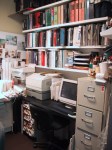 A small 10′ w x 17′ l office studio to accommodate 2 to 3 working stations, a meeting area, library space for reference material, storage and shelves space for models and samples, copy area, coffee area and wall surfaces for project display, etc.