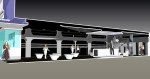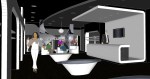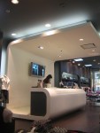 This project is to remodel the existing J2 jessica fashion store that our firm designed at Oakridge Shopping Center back in 2003. Since then, the existing store has established a strong brand image in the mind of their clientele of young demographics group. However, seeing the products they now carry have changed to less feminine, they were looking for a different image. CONCEPT & STRATEGY: with a limited budget on this remodeling, our design was to keeping the main “structure” bone of the space and change with a very different color scheme that complements with the change of styling and specialization of clothing. However, the two most distinguished elements from the existing store, i.e. the 16 ft long front storefront display and the 12 ft long cashier counter remained the same, to bring it out more so. Once a complete blend into the white surroundings with red accent lights, now they display a strong contrast to and show a little mechanistic quality to it. The storefront and counter exterior subway tiles were all painted dark grey that look like painted bricks to make it more raw look. The store now has a more contemporary, gothic and underground feels to it. New mirror were added over the fitting area screen on the floor area side that bounce off more light and provide a rather fragmented reflection within the darker interior. New white and black horizontal shelves were added for more t-shirts and handbags display. The flooring was covered with wood laminate flooring which provides a neutral background to play off strongly with the cashier counter station and also requires less maintenance. Ceiling was painted black with the circular dropped ceiling painted a dark grey, etc.