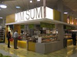CONCEPT: we proposed a modern rectilinear box clad in bamboo laminate that reminiscence of a steam basket. A white painted overhang wrapping all sides also provided the additional lighting required. The existing steel column in the front was concealed within a cement-look tectonic element that continues from the counter and up all the way to the exiting T-bar ceiling. While a dim sum picture sign box was installed on the front wall, a three dimensional English/Chinese characters of DIM SUM backlit by a translucent sign box was installed on the upper corner. The whole expression was designed with modern and simplicity in mind, with which we tried to provoke an upbeat atmosphere for specialty Asian food shopping.